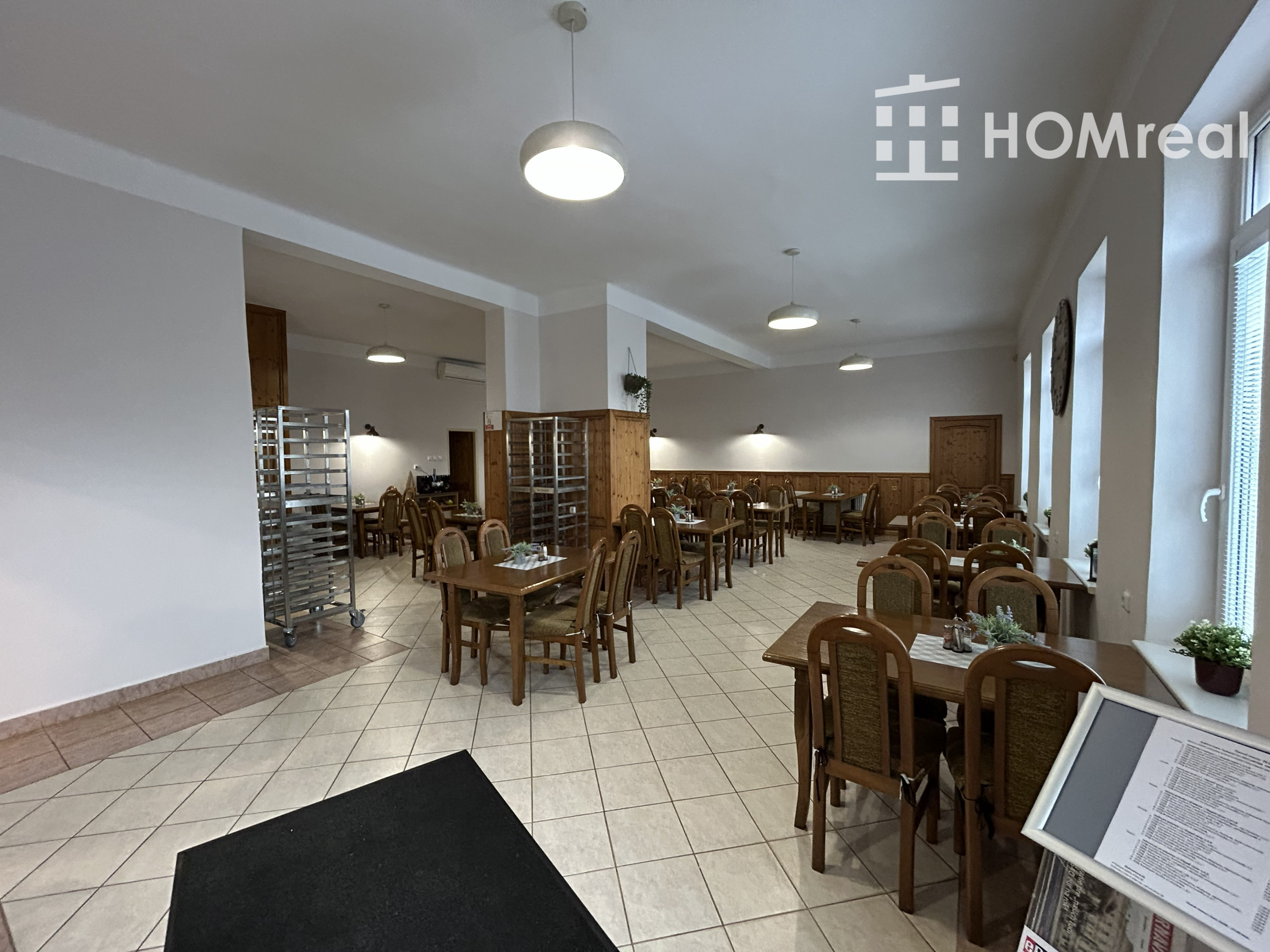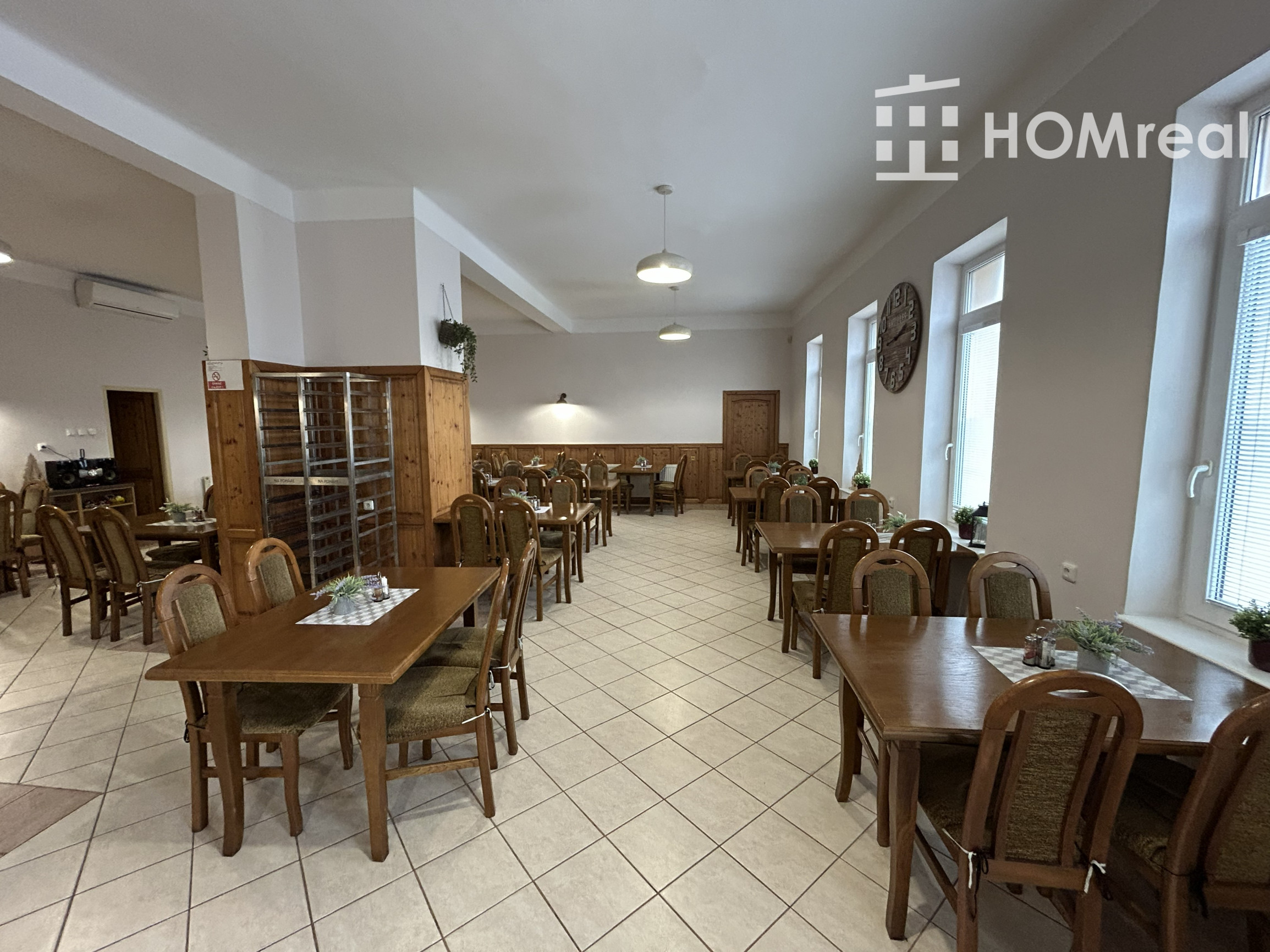 veľký otvorený priestor vhodný ako jedáleň alebo predajná plocha,