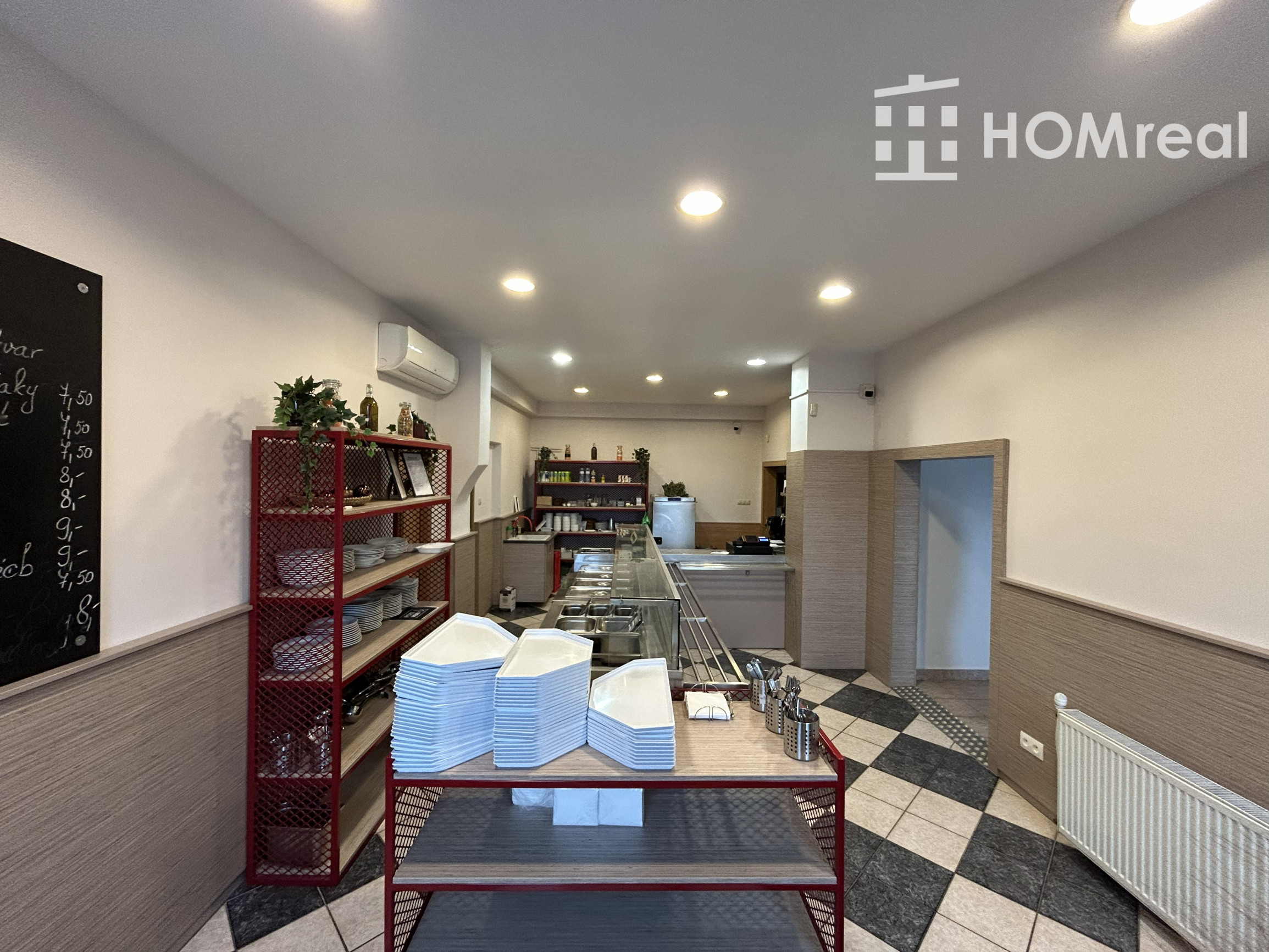 veľký otvorený priestor vhodný ako jedáleň alebo predajná plocha,